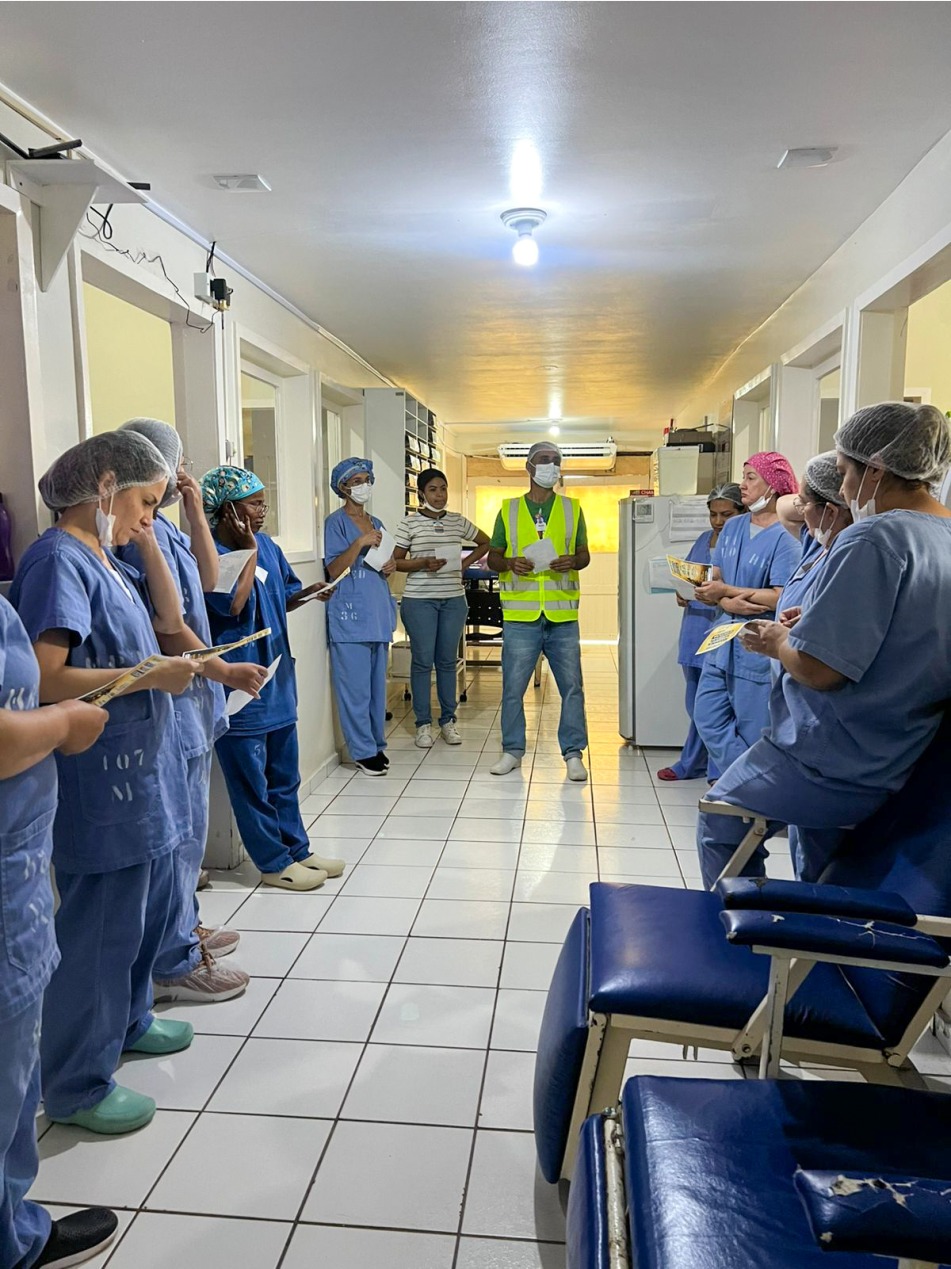 Isso causou uma preocupação significativa nas equipes da SESMT e da CIPA. De acordo com o relatório de atendimento do complexo hospitalar do ano passado, foram atendidos em média 4.200 pacientes dos municípios do entorno do lago: Tucuruí, Breu Branco, Goianésia do Pará, Jacundá, Novo Repartimento e Tailândia. “Esses dados foram fundamentais para estabelecer o tema da Semana Interna de Prevenção de Acidentes do Trabalho: “Segurança não é sorte. É escolha”, organizamos uma dramatização de um acidente de trânsito envolvendo uma motocicleta no corredor do hospital. O objetivo é alertar sobre os perigos cotidianos do trânsito na cidade, além de reforçar a obrigatoriedade do uso dos equipamentos de segurança necessários”, ressaltou Ítalo Henrique.